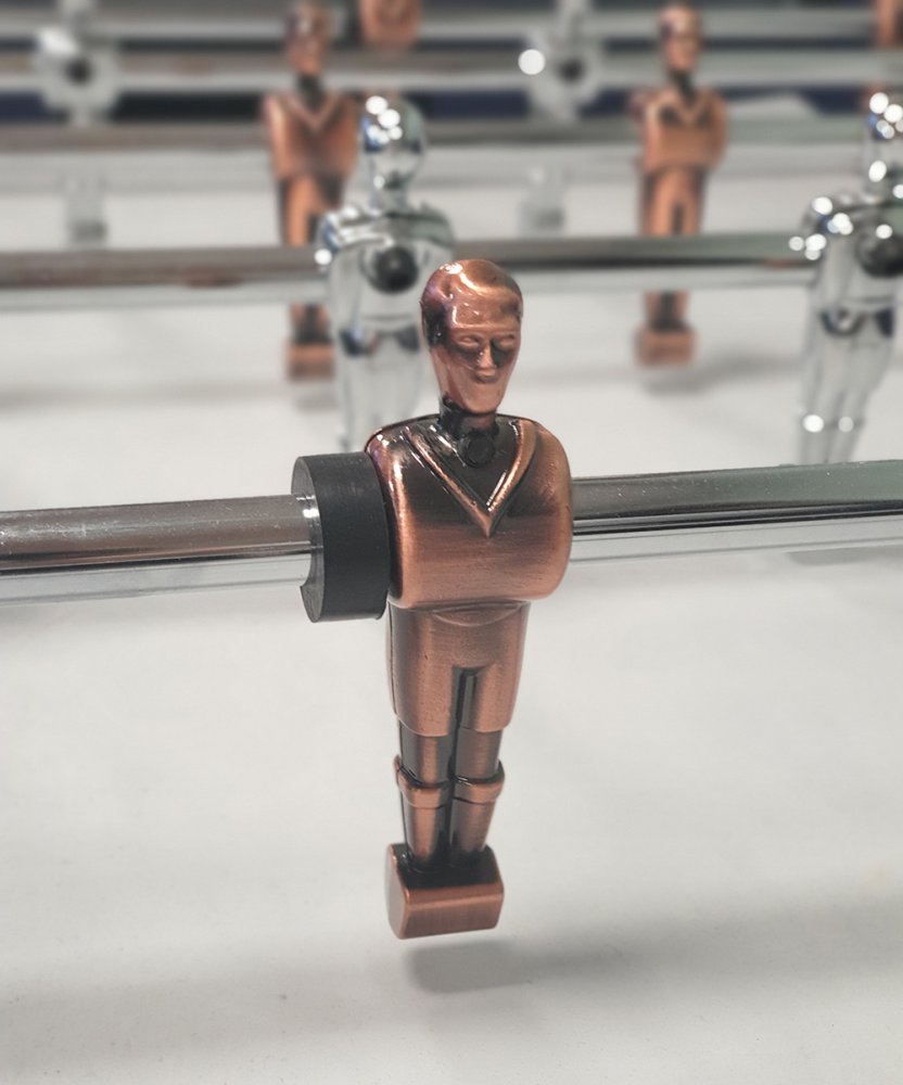 Deze voetbaltafel is niet alleen stijlvol, maar ook ontworpen voor een soepele en dynamische speelervaring. De stevige stangen met ergonomische handgrepen zorgen voor optimale controle, terwijl de gegoten speelpoppen maximale precisie en duurzaamheid garanderen. Het speelveld is ontworpen voor een snelle en nauwkeurige balbeweging, waardoor elk spel spannend en competitief blijft.